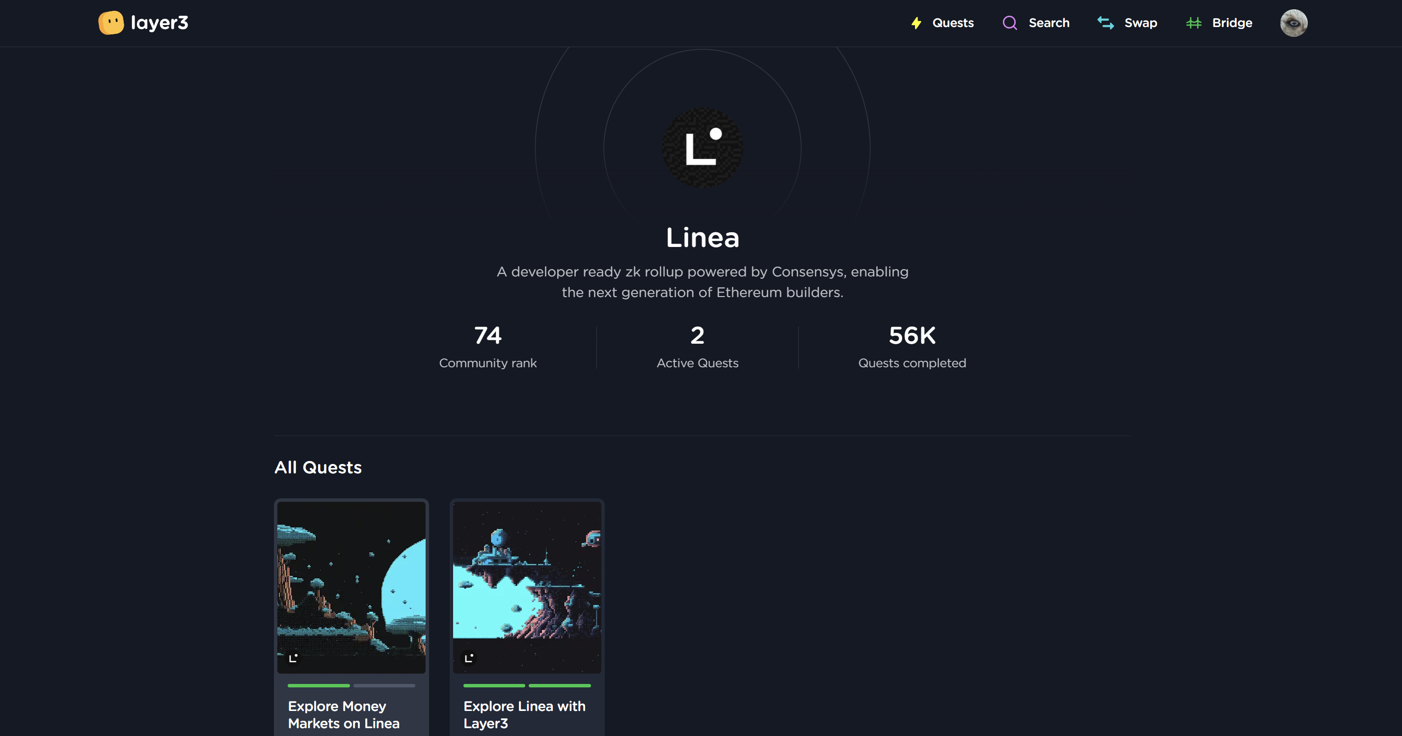 At this moment there are two quests directly related to Linea network. Check regularly for future tasks.