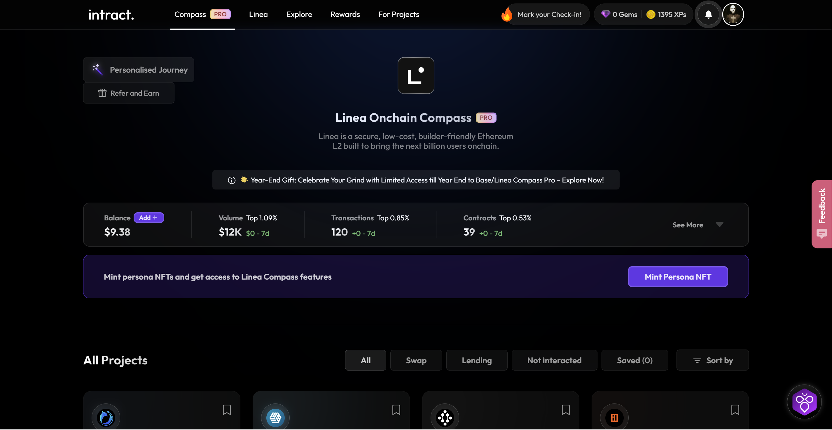 Intract offers Compass function to track your wallet activity and provides multiple quests in many different protocols.&#x20;