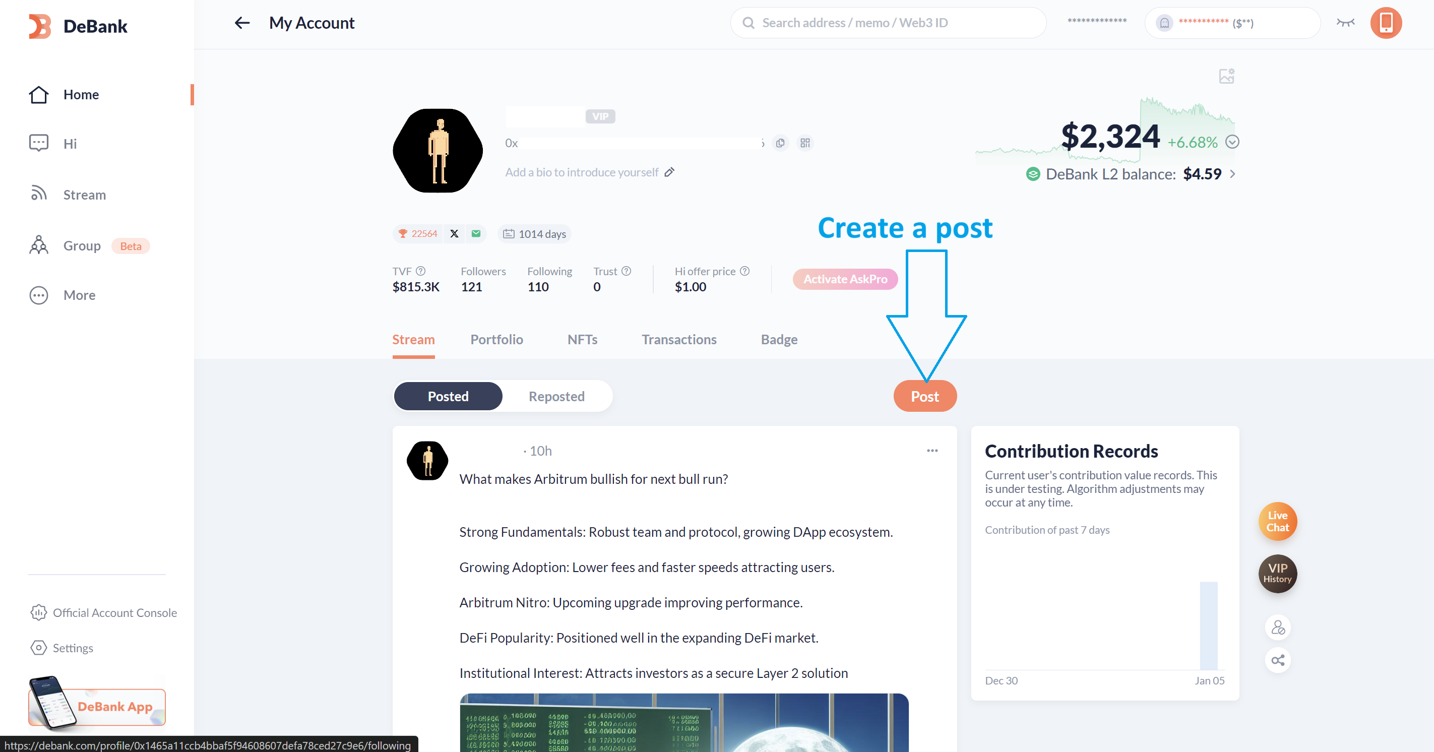 You can use Debank to  be in touch with your community and share interesting content.