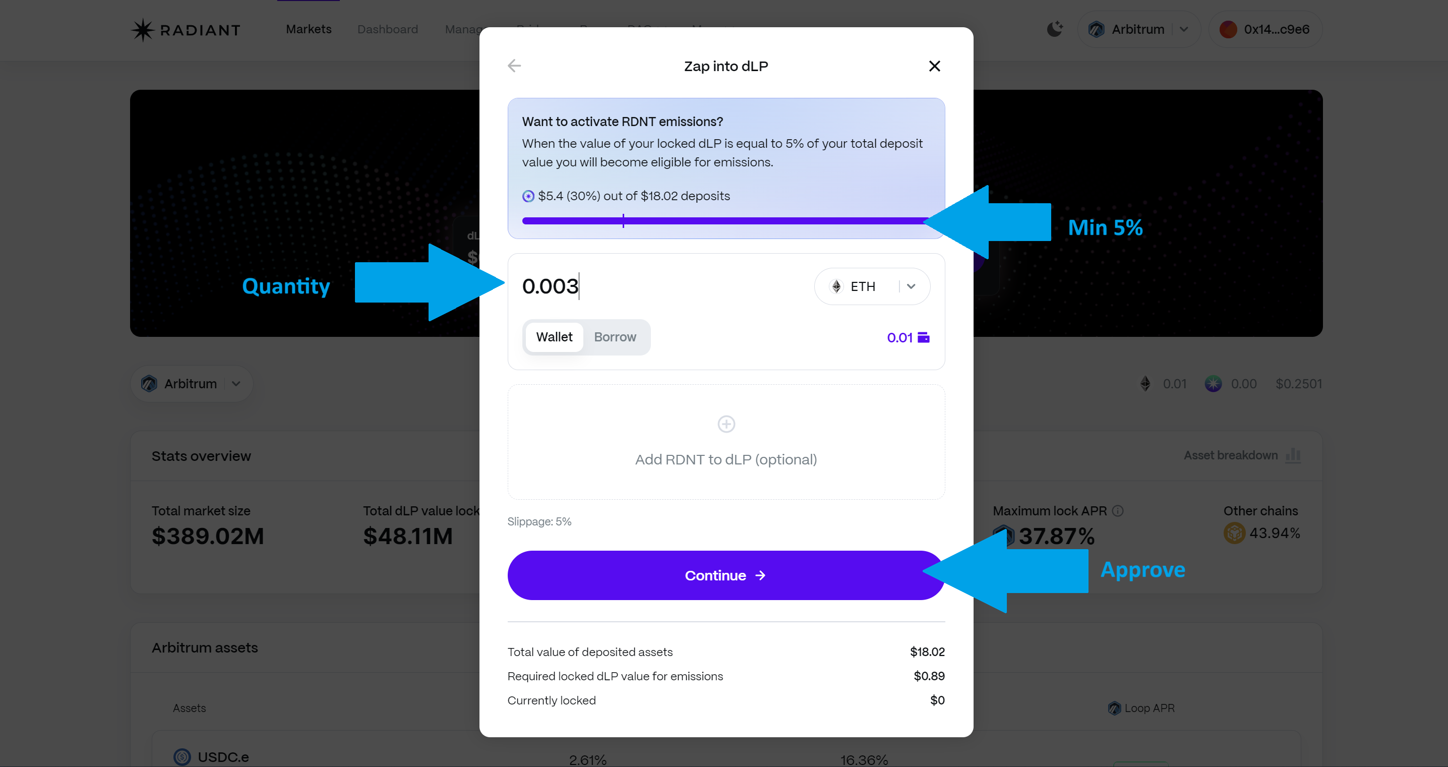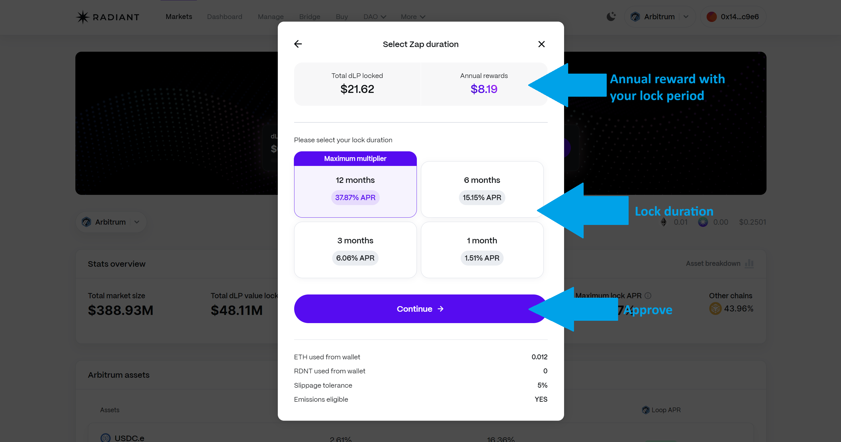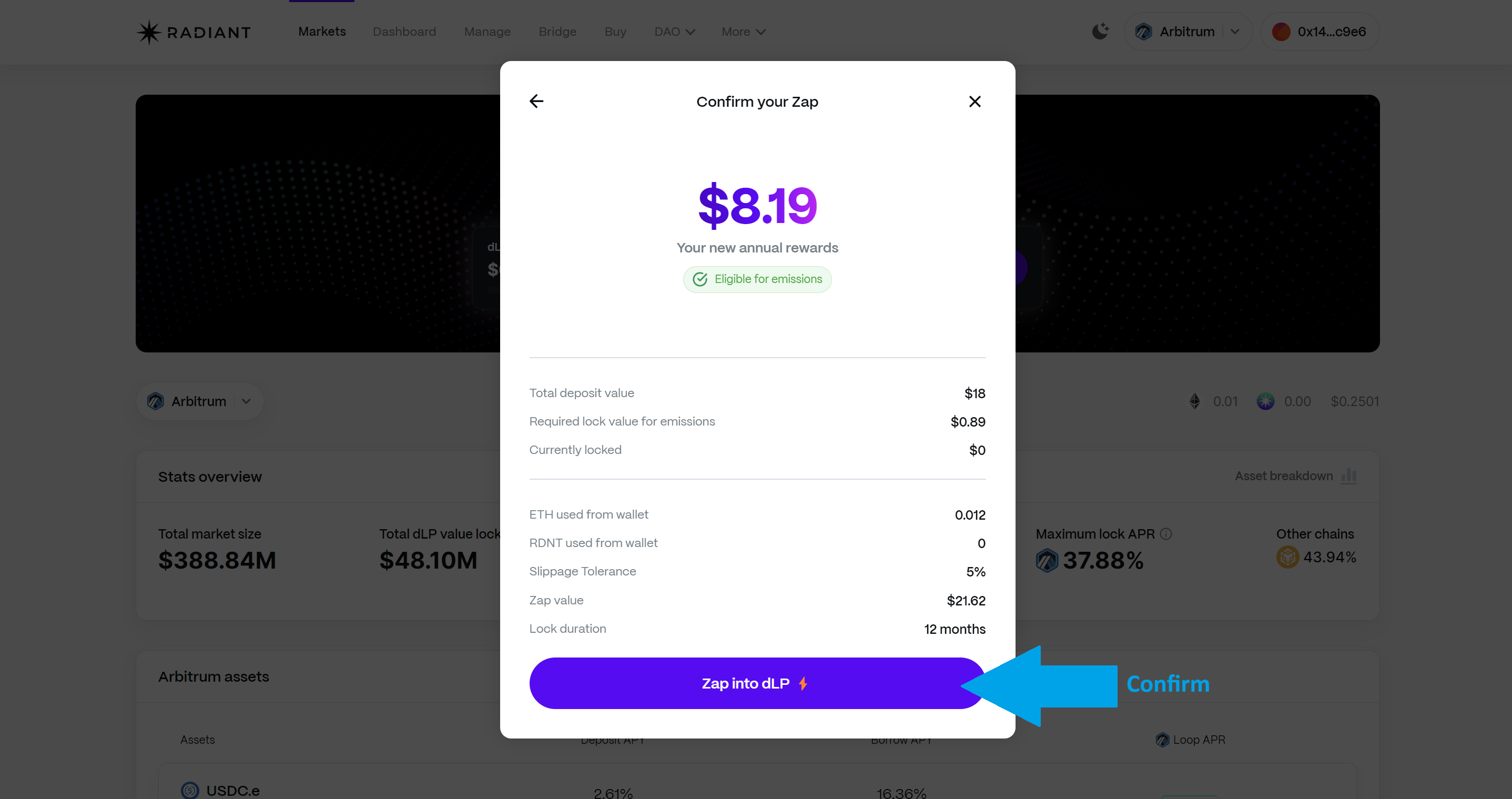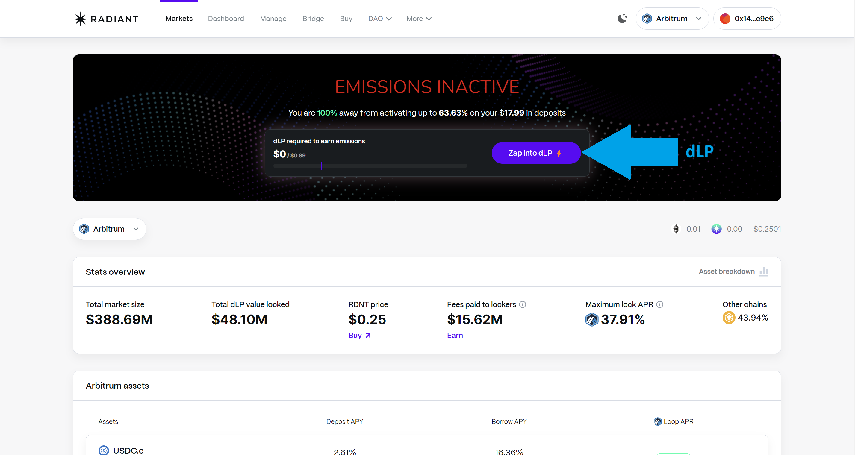 * You can activate Radiant emissions and get extra APY.&#x20;