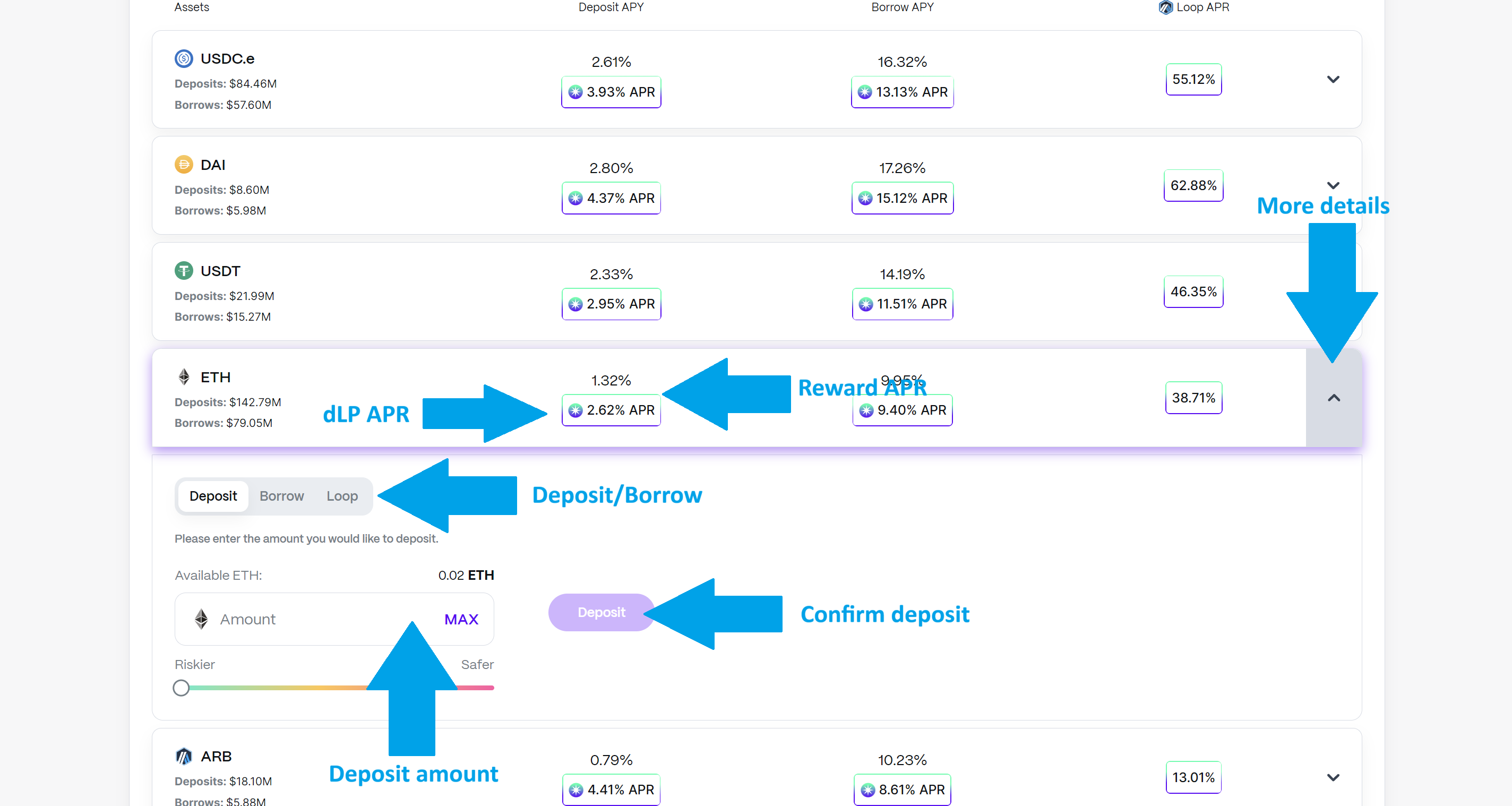 * Confirm by clicking the “Deposit” or “Borrow” button.