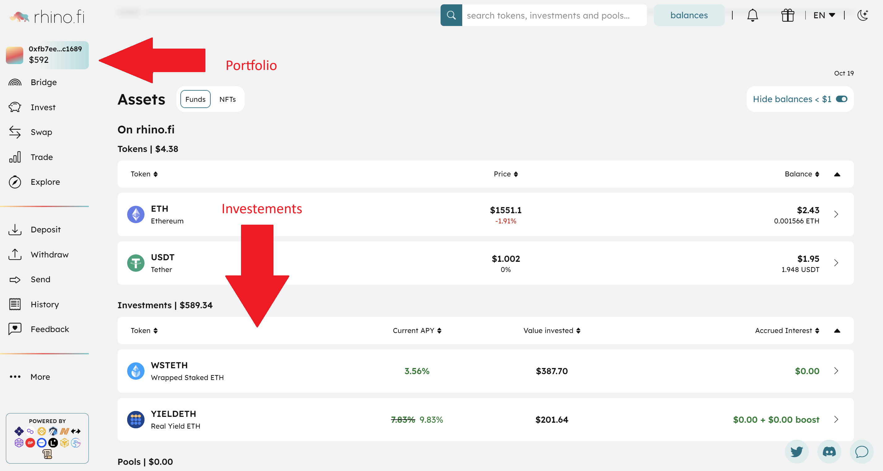 * Manage all investments on the portfolio page. There is an overview of all unlocked and invested assets.