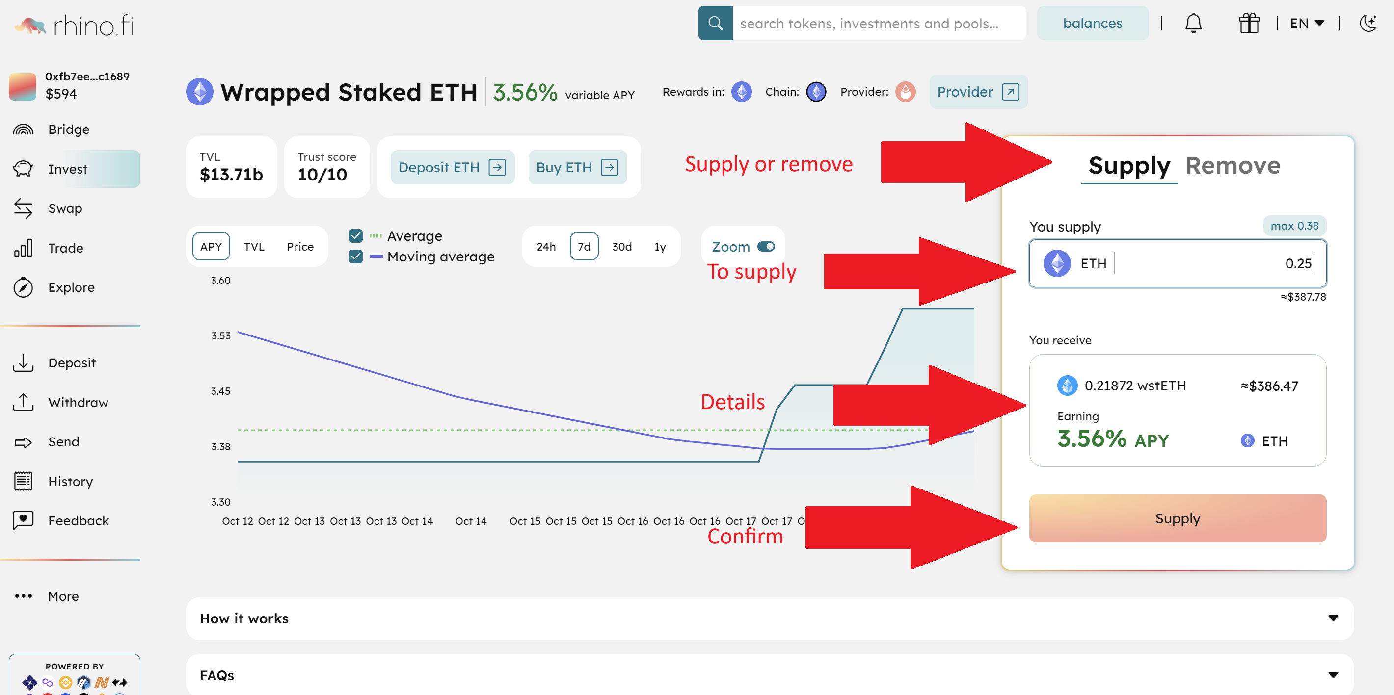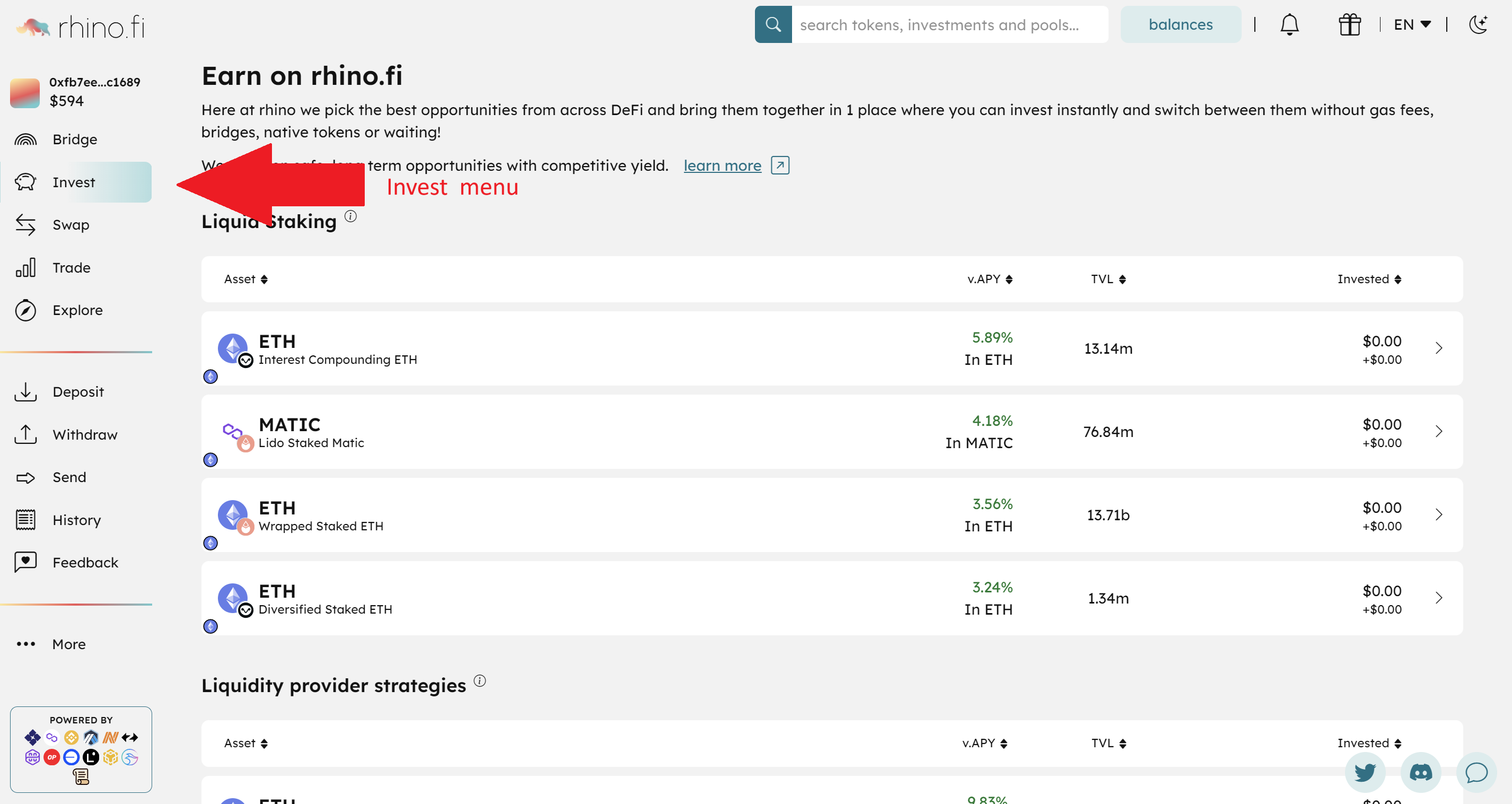 * Rhino aggregates interesting DeFi opportunities in one place.