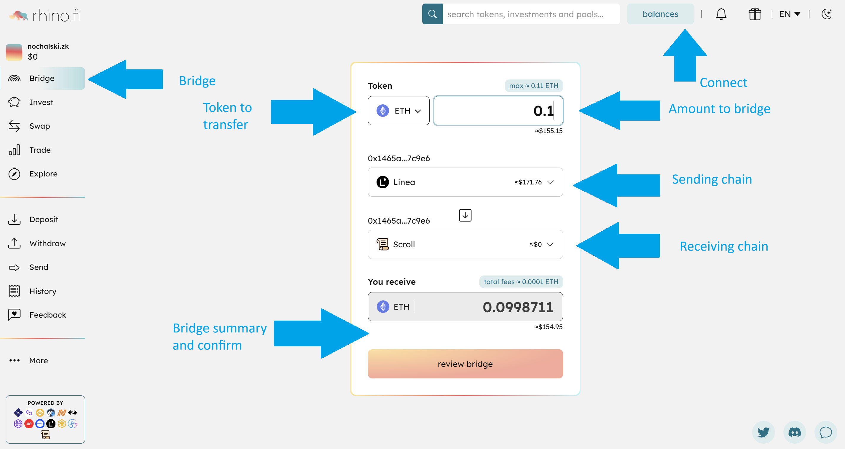 * To start using Rhino beyond their bridge, you need to make a deposit.