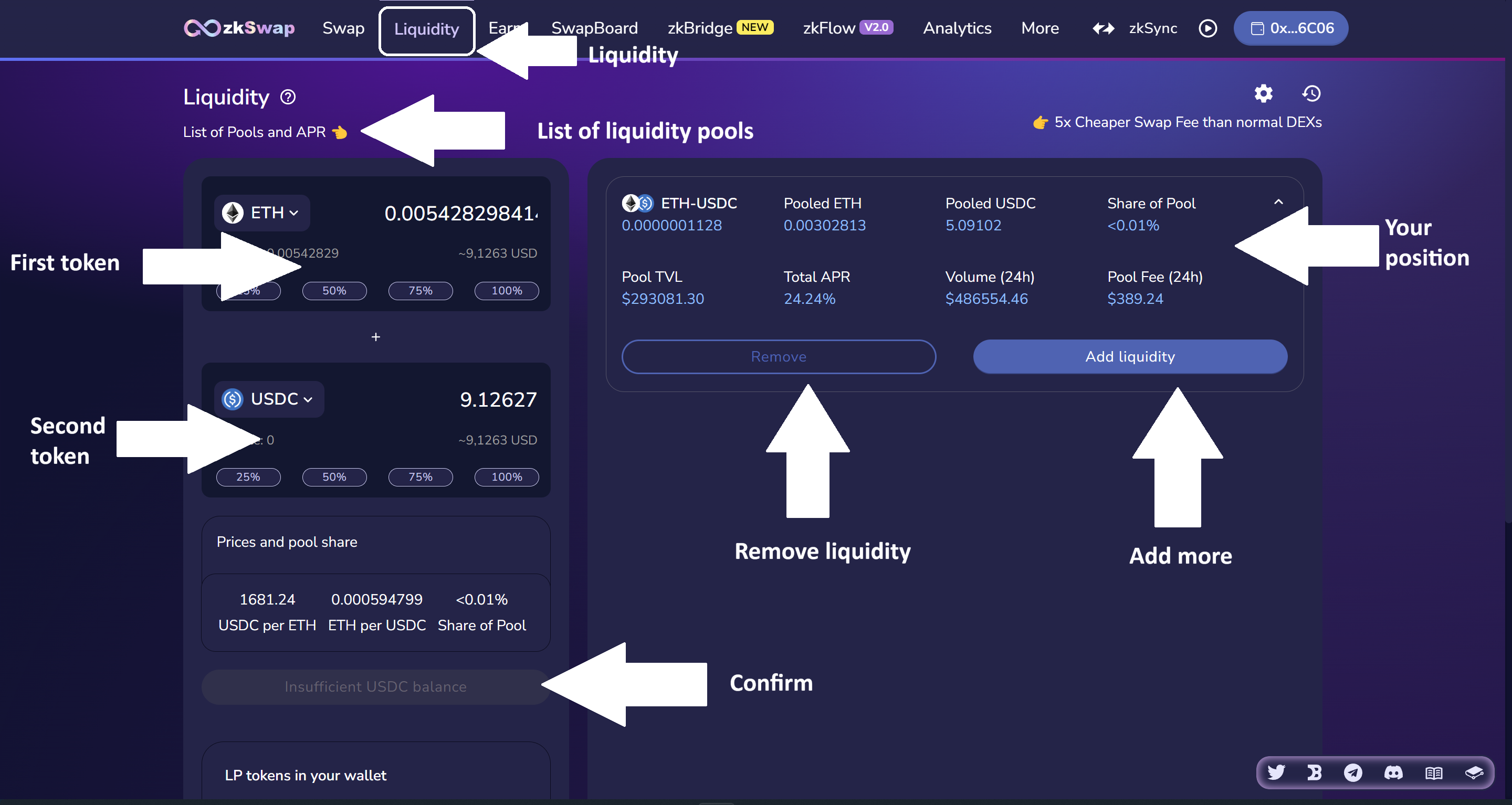 <figure><img src="https://4286049237-files.gitbook.io/~/files/v0/b/gitbook-x-prod.appspot.com/o/spaces%2F41vvUaUaaGdHwJz7DsQl%2Fuploads%2Fq5f0zUoLoDweJ2WvMJal%2Fzkswapliquidity.png?alt=media&#x26;token=697f572b-69e1-4363-998a-ba718c67e1ce" alt=""><figcaption></figcaption></figure>