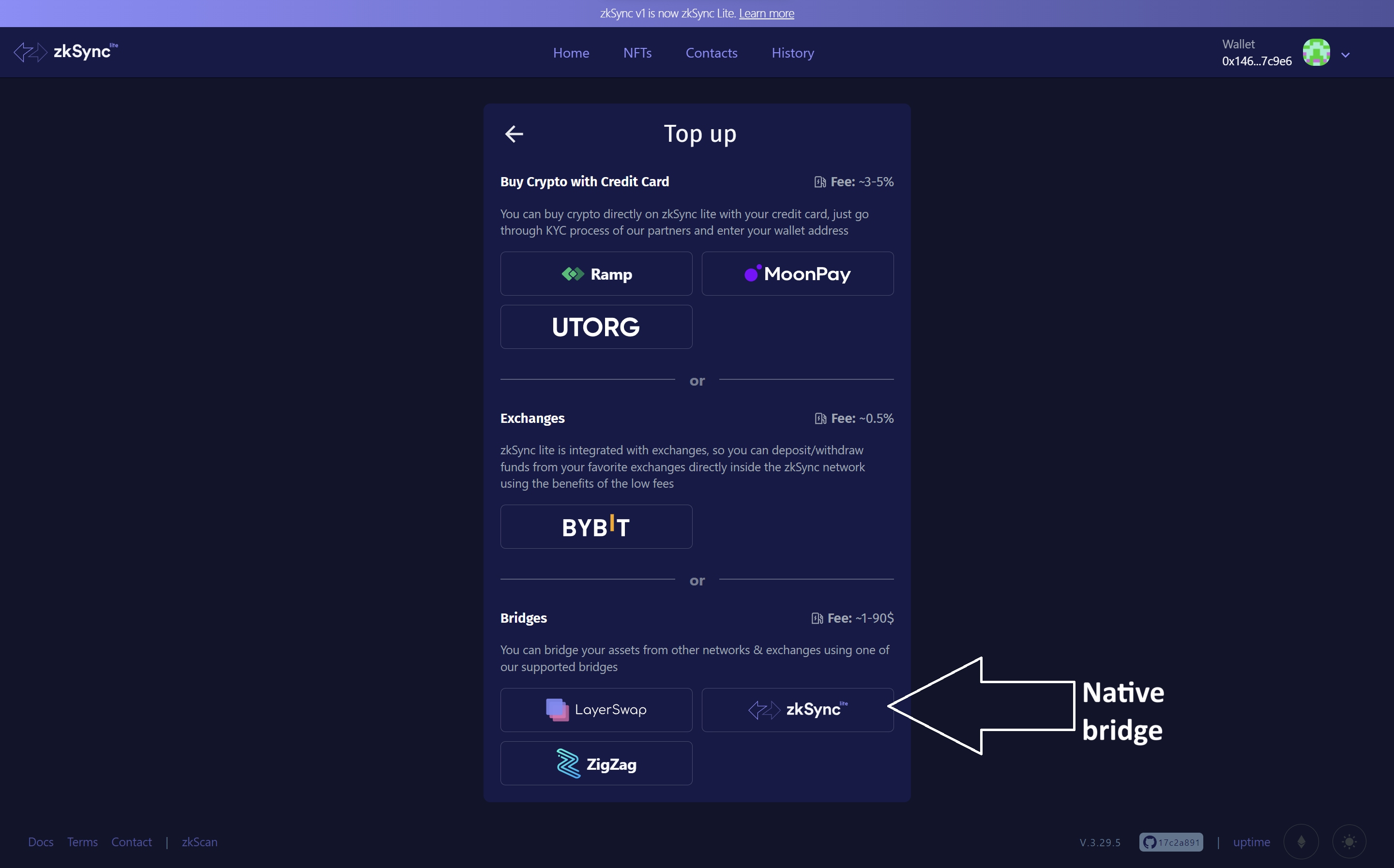 * You have multiple options to supply your zkSync Lite wallet. FIAT or CEX transfers and bridges from other networks.